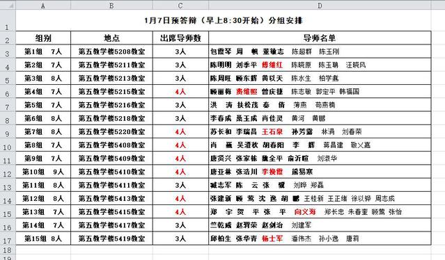 1、【2018年上半年MPA学位论文预答辩】定于1月7日(本周日)上午9:00开始,导师分组即为本人所在组,详见下图。请各位同学务必根据出席导师人数准备好纸质论文,并制作好6-8分钟的汇报PPT,提前一刻钟到达指定教室,请做好准备!