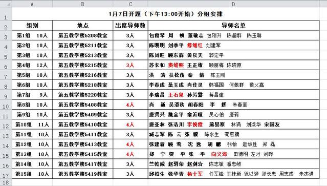 2、【2018年上半年MPA学位论文开题】定于1月7日(本周日)下午13:00开始,导师分组即为本人所在组,详见下图。请各位同学务必根据出席导师人数准备好纸质开题报告,并制作好6-8分钟的汇报PPT,提前一刻钟到达指定教室,请做好准备!