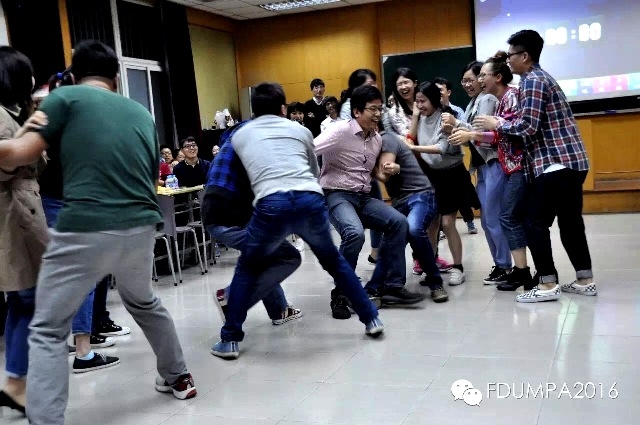 九月伊始,在那个秋叶尚未泛黄,秋风尚未飒爽的时节,2016级MPA社会班的120多位同学收拾好行囊,满怀着重返青葱校园的激动、喜悦和憧憬来到了复旦,这个圆梦、追梦的美妙殿堂。 经历了报道、入学、选课,乃至终于坐进书香溢动的课堂教室,重新接受“传道、授业、解惑也”的神圣洗礼,那种被知识充盈的感觉,令头脑和心情都得到了完全不一样更替转换。将平日的繁忙工作和庸碌生活全都暂置脑后,一群新的伙伴,一段新的际遇,就这样开始丰盈着崭新的人生。而在课堂之外,一场场用心组织、用爱贡献、用情共享的班级活动,也无限丰富了同学们的时光,留下那么多令人难忘的精彩瞬间…… 2016年10月15日晚“破冰”活动合影 10月15日晚,班级“破冰”活动在大家熟悉的小白楼华丽登场,由此揭开了16级MPA秋季班班级活动的初始篇章。近80位老师、同学欢聚一堂,轮滑、歌唱、魔术表演惊艳全场,游戏与大奖更是让“群众们”嗨翻了天。全场同学随机分成7个小组:八仙过海各显神通、金刚葫芦娃一棵藤上七个娃、八个小矮人和一位白雪公主、江湖险恶不行就撤、九五至尊天下有我、666队最6了我的哥、香蕉007队“香”聚复旦“蕉”会校园,童趣与智慧并存的朗朗队名就是同学们精神状态的最好体现!人生若只如初见,那便是如此,极好。 11月20日,克服万难,期盼已久的“大王来巡山了!——2016级复旦MPA金秋嘉善行”如期举行。从大巴车上一路“猜猜他是谁”的小游戏开始,新的了解和友谊就在默默酝酿之中……到了美丽的远郊活动场地,在专业拓展教练的指导下,“涨停(红)队”、小黄人队、绿巨人队、四(势)不可挡(蓝)队的40余位同学,经过了整整一天的团队展示、“大航海时代”、接水管竞赛以及“奔跑吧,同学!”等诸个环节,在献计献策和斗智斗勇中,获得了一种很独特的体验,建立了一层更紧密的连接,也留下了一次非常难忘的经历。 2016年11月20日金秋嘉善行活动留影 12月23日晚,圣诞老公公正驾着雪橇还在匆匆赶来的路上,而16级MPA有心的班委们就已经先行一步,将礼物和欢乐带给了全班同学们。看,咱们MPA版的圣诞老人似乎更年轻更帅气呢;哟,那两只小麋鹿是不是可爱小天使降落到咱们班;哇,原来世上还有这么美丽的圣诞树,如果圣诞树都是这么美腻的小姑娘,估计大家都要不爱圣诞老人了!一个欢笑声比圣诞铃声更清脆的夜晚,糖果很甜、帅哥美女的装扮很赞,那么,“逢考必过”的护身符是不是也很灵呢!“沉迷学习,日渐消瘦”,就看你们的了! 2016年12月23日晚圣诞活动留影 连续2天、4门功课的紧张考试后,期末的钟声已然就要敲响了……但是,美好的时光怎可让它如此轻易的结束?对16级MPA秋季班的同学们来说,这个句号必须画的圆满,并且变成大大的感叹号!1月7日晚,筹划已久的“班级集体生日会暨欢乐新年趴”在由始至终的浓浓温情和烈烈热情中给了大家一个满意的答案:中心老师齐齐到场,80余位同学携亲带友组成的百余人豪华大阵容,从一开始就奠定了活动圆满的基调;由班上同学原创的兼具“复旦和班级”标志的巨型蛋糕更是收获了满满的点赞;新晋主持人的风趣幽默以及游戏、奖品的大大鼓励,让众多同学玩的开心且满载而归;幕后人员和摄影师们辛勤给力的高水平工作,更是不得不让同学们纷纷打上满分…… 2017年1月7日晚“生日会&新年趴”活动留影 就这样,令人无限感慨和回味的一学期,终于还是落下了帷幕。回首珍贵时刻,展望美丽未来,有温情的老师、有给力的班委、有可爱的同学,那么,新的精彩必然还会有更多,更多……因此,不多言,谨继续,请期待。