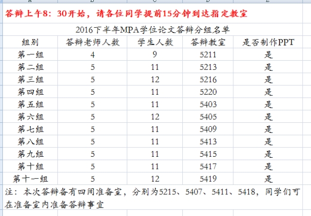 本学期MPA学位论文答辩拟定于12月4日(周日)上午8:30开始,地点、出席老师的人数及相关要求请见下表及附件。