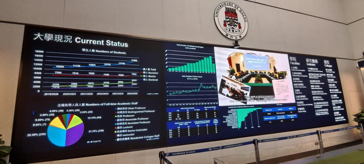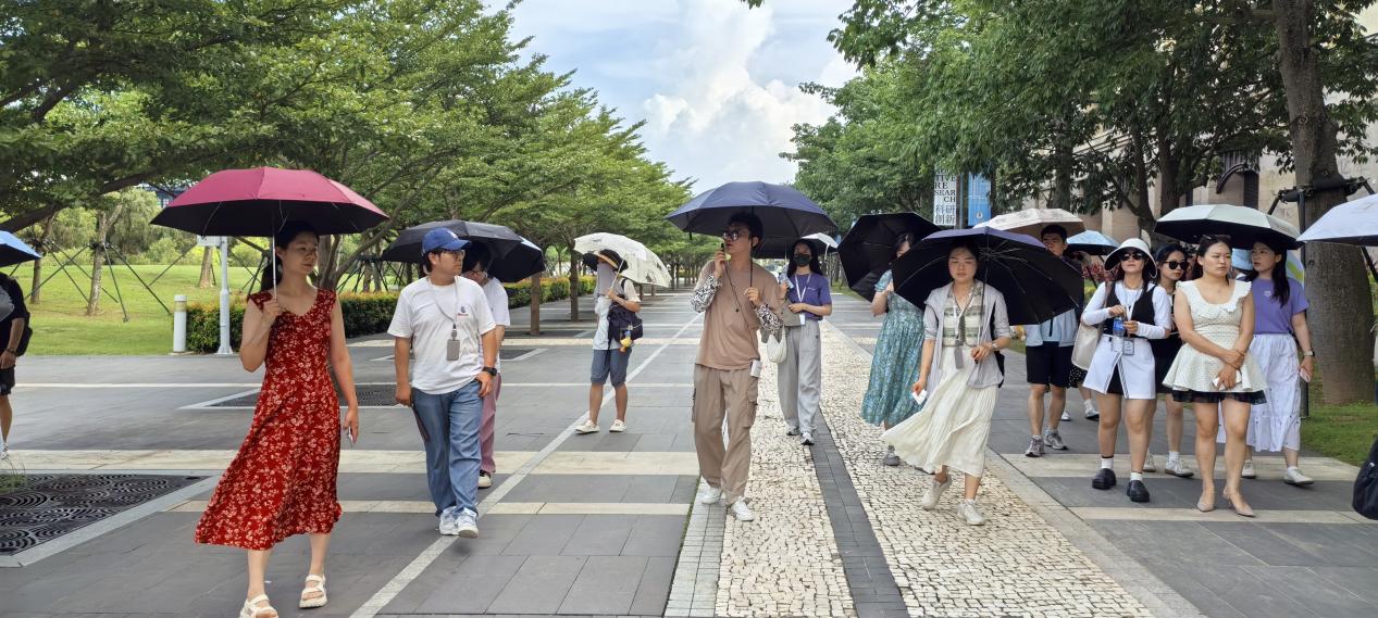 很幸运地遇到一位同样来自上海,目前在澳大就读的博士小哥哥,为我们带来了一场非常专业的校园导游。同学们对大学概况、校园建设、特殊文化地理特征、学校发展目标与前景等都获得了很多了解。澳门大学前身为1981年3月28日成立的东亚大学;1991年由私立转为公立并更名为澳门大学;2014年8月正式迁入位于广东省珠海市香洲区横琴岛的新校区。经过全新规划并建设的新校区,建筑美轮美奂、景观水木相交,给人以非常充沛的直观感受。