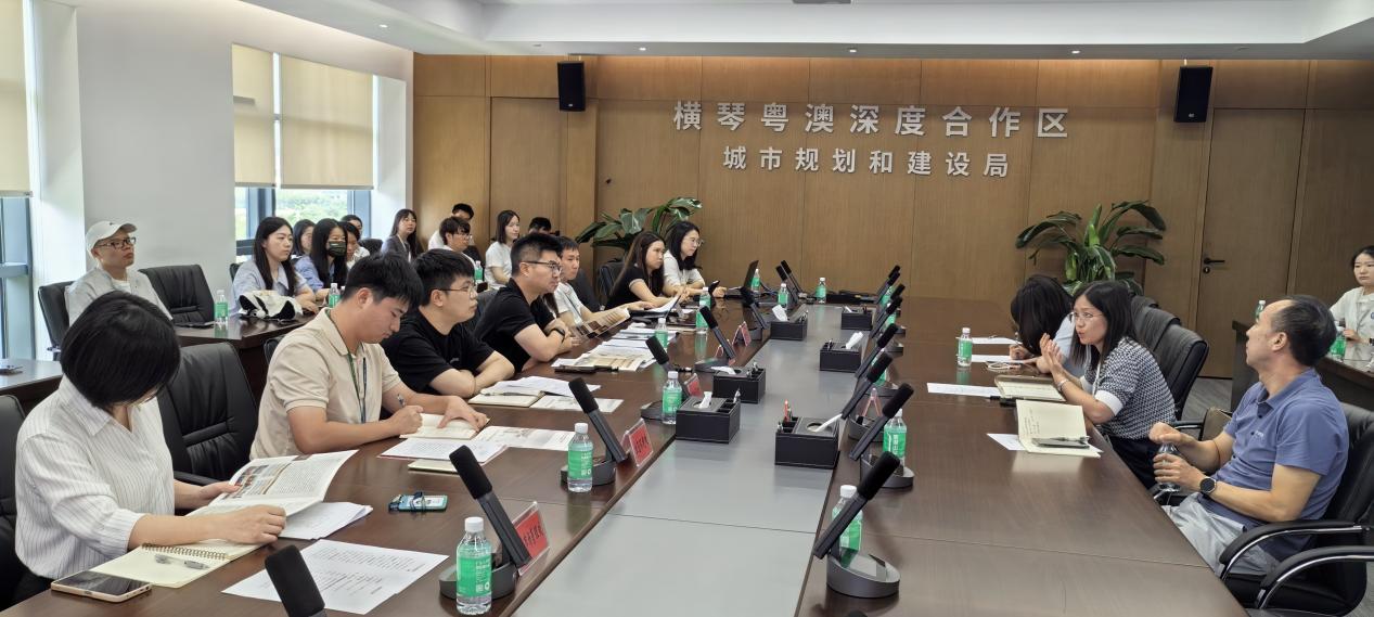 围绕“促进澳门经济适度多元发展”这条主线,国家赋予合作区“促进澳门经济适度多元发展的新平台、便利澳门居民生活就业的新空间、丰富“一国两制”实践的新示范、推动粤港澳大湾区建设的新高地”四大核心战略定位。七月的风,带着南海的温润,轻拂着珠海这座海滨城市的面庞。7月4日上午,从澳门酒店出发,短短十几分钟的车程,便抵达了横琴口岸。过关后,我们一行28人,就直奔横琴粤澳深度合作区城市规划和建设局,展开期待已久的深度调研。踏入那扇门,仿佛开启了一扇通往未来的窗。