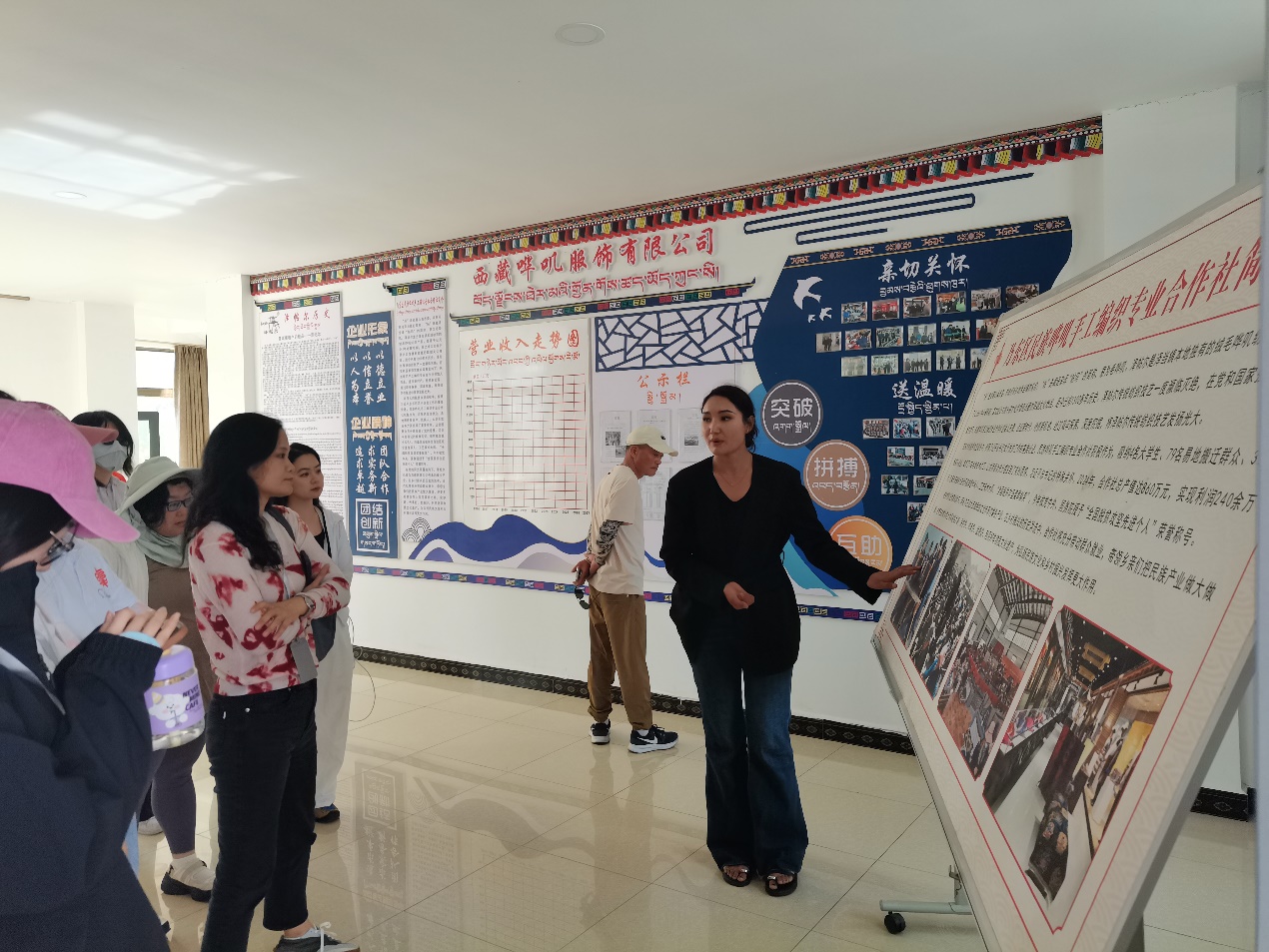 离开统战部,实践团来到民族哗叽手工编制专业合作社,指尖翻飞间,藏式传统织物的独特魅力扑面而来。在这里,我们不仅见证了哗叽手工编制的完整生产过程——从羊毛筛选、染色到编织,每一道工序都承载着藏族传统技艺的精髓,更听闻了巴桑书记带领合作社突围的动人故事。