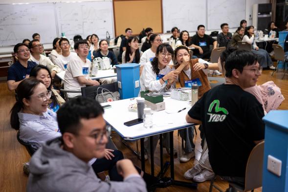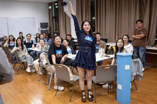 “你来比划我来猜”:同学们先进行简短的自我介绍,随后两两搭档,大家默契配合,或手舞足蹈、或急中生智,每一次成功猜对都伴随着阵阵掌声,团队协作的火花在游戏中不断迸发。