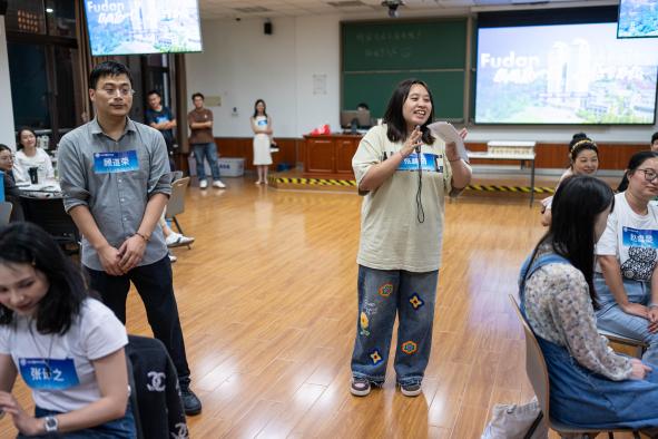 晚会进行中,复旦大学MPA教育中心顾丽梅主任和左才副主任的到场看望同学们,为现场增添了一份特殊的温暖。她们走进教室,静静观看同学们的比赛,还亲切地为同学们送上真挚祝福,并与全班师生合影留念,定格下这一温馨瞬间。