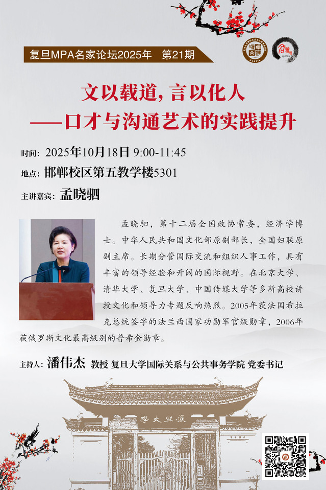 10月18日孟晓驷:文以载道,言以化人——口才与沟通艺术的实践提升