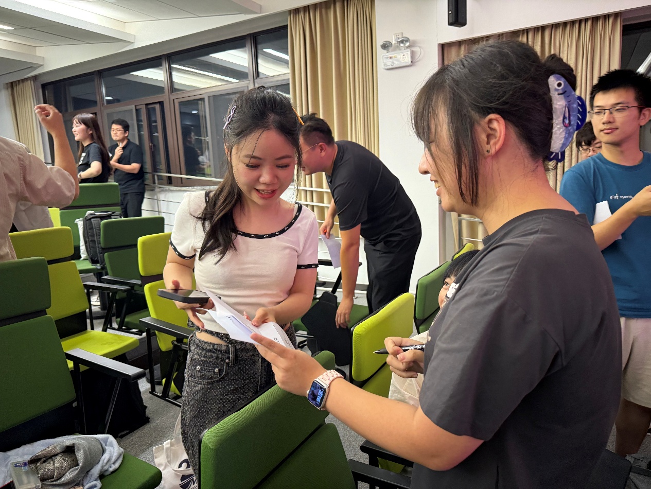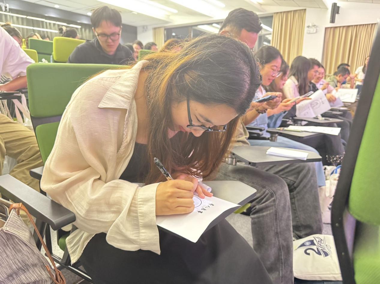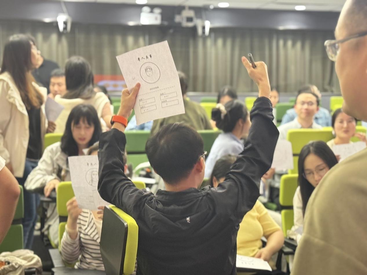 破冰的第一个任务,从一幅小小的自画像开始。同学们尽情挥洒创意,用画笔勾勒自我,并附上关键特征描述。随后,这些“寻人画卷”被打乱分发,一场 “寻人行动”火热开启。大家化身为细心侦探,根据画像线索在会场中穿梭,寻找画作的主人并获取签名。现场气氛迅速升温,欢声笑语不绝于耳。