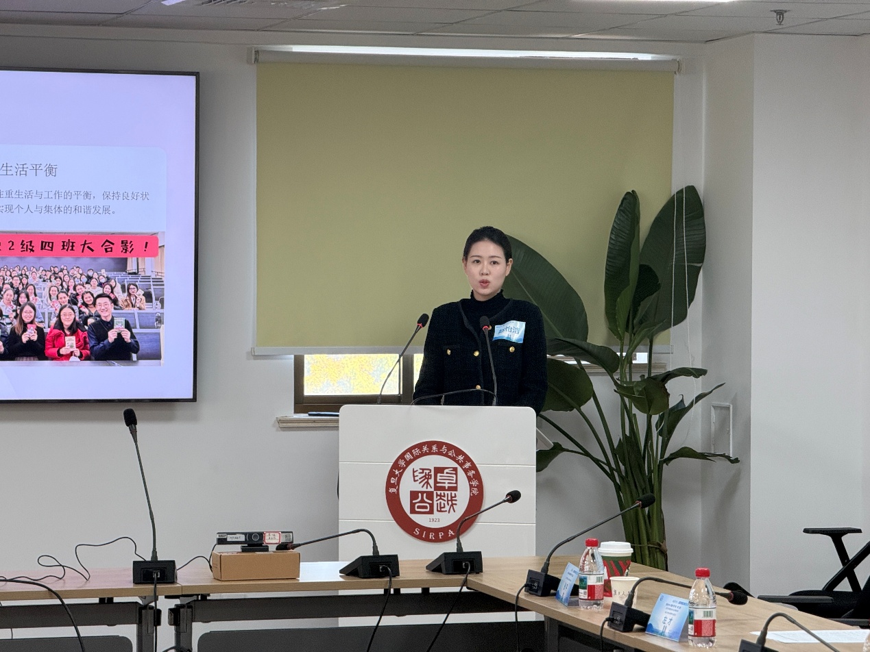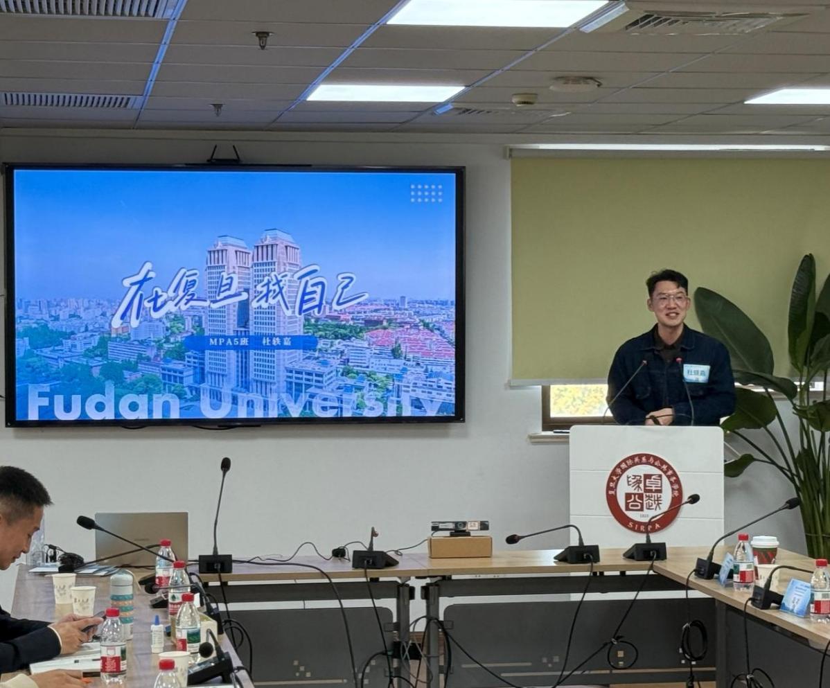 往届学长学姐分别从不同角度的亲身经历传递在MPA收获的成长智慧。2021级三班班长、2024届复旦大学优秀毕业生周殿军,以《乘时代长风铸文明之魂》为题,分享了将MPA理论知识融入嘉定精神文明建设实务的经验,为“理论如何赋能基层治理”提供了鲜活案例;2022级五班学习委员、2025届复旦大学优秀毕业生余星提出“向外看、向内求、向前行”的成长路径,强调要通过打破认知闭环、升级思维系统、迭代行动模式,破解“公共政策转化落地”难题;2022级四班副班长、2025届国务学院院长奖获得者赵怡洁则以“扎根、转化、担当”为关键词,寄语学弟学妹以“空杯心态”研学、“务实姿态”践学、“温暖之怀”惜缘,在公共领域践行青年使命。