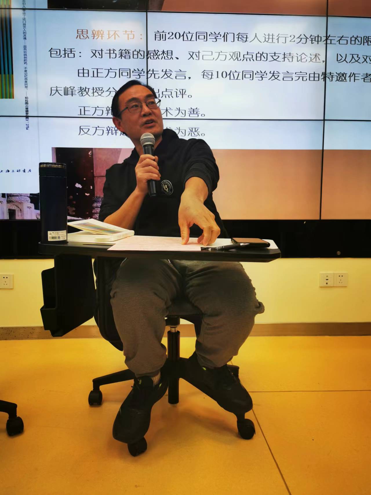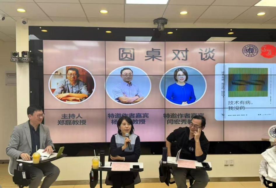 复旦大学国际关系与公共事务学院教授郑磊老师推荐阅读的书籍是《技术有病,我没药》,本次活动有幸邀请到了来自中国科协 - 复旦大学科技伦理与人类未来研究学院的杨庆峰教授和来自上海交通大学科学史与科学文化研究院闫宏秀教授作为原作者嘉宾亲临现场。所有同学和老师围绕本书观点、感悟、启示等展开激烈地思辨与真诚地分享。